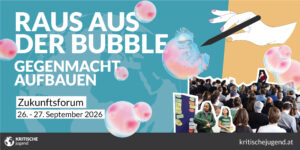 Melde dich gern jederzeit, wenn du noch offene Fragen zum Zukunftsforum hast. Am besten unter office@kritischejugend.at.